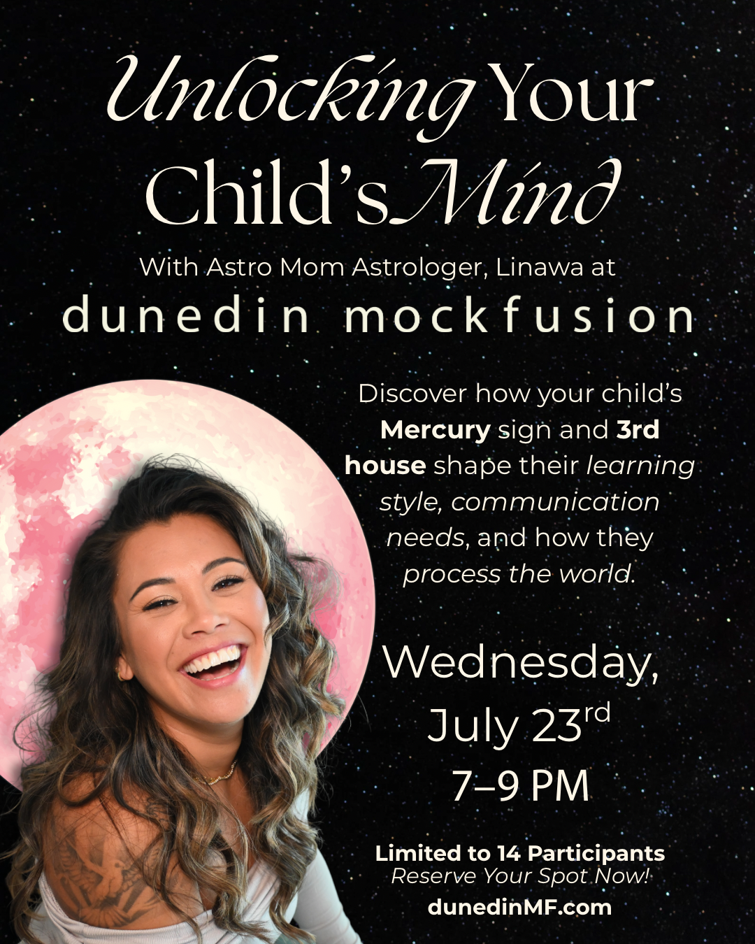 Join Astro Mom Astrologer, Linawa, for an enlightening evening at Dunedin MockFusion as we explore the power of the lunar nodes in astrology. The North and South Nodes reveal your soul’s purpose, highlighting paths of growth, fulfillment, and the patterns that keep you stuck.